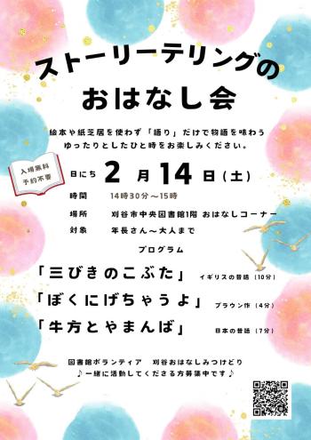 文化・芸術・スポーツ公開日:2026年01月11日2026年2月14日(土)ストーリーテリングの会開催日:毎月第2土曜日