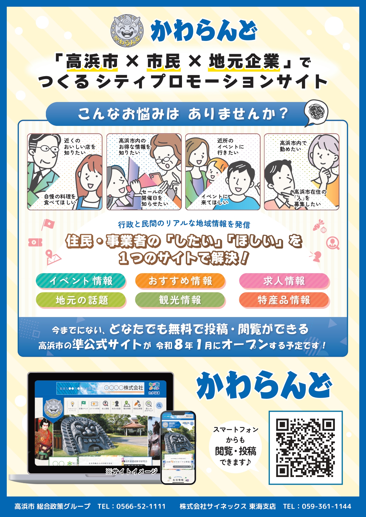 みんなで高浜市の情報を発信する高浜市のシティプロモーション特設サイト「かわらんど」が2026年1月オープン!