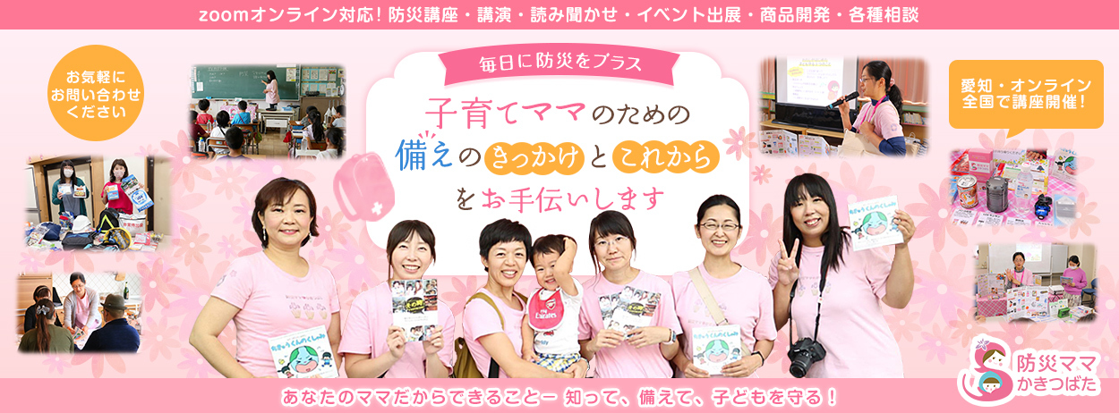主に愛知県で乳幼児親子に向けて防災啓発しています「防災ママかきつばた」です。