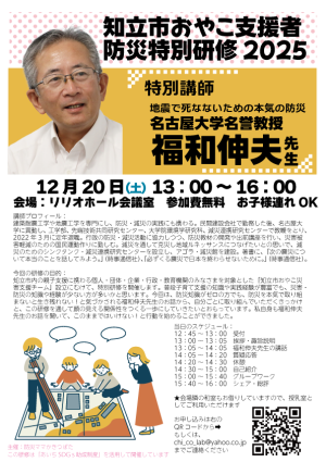 【募集】12/20(土)『知立市おやこ支援者防災特別研修2025〜福和伸夫先生〜』を開催します!イベント終了