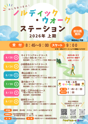イベント公開日:2026年04月21日令和8年度上期ノルディック・ウォークステーション開催日:2026年04月26日(日)、05月24日(日)、06月28日(日)、07月26日(日)、08月23日(日)、09月27日(日)