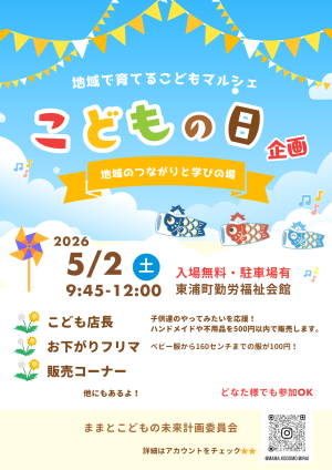 開催日:2026年05月02日(土)開催時間:9:45~12:00こども店長 ・子どもたちがハンドメイドや不用品を500円以下で販売します。 →レジンキーホルダー・...