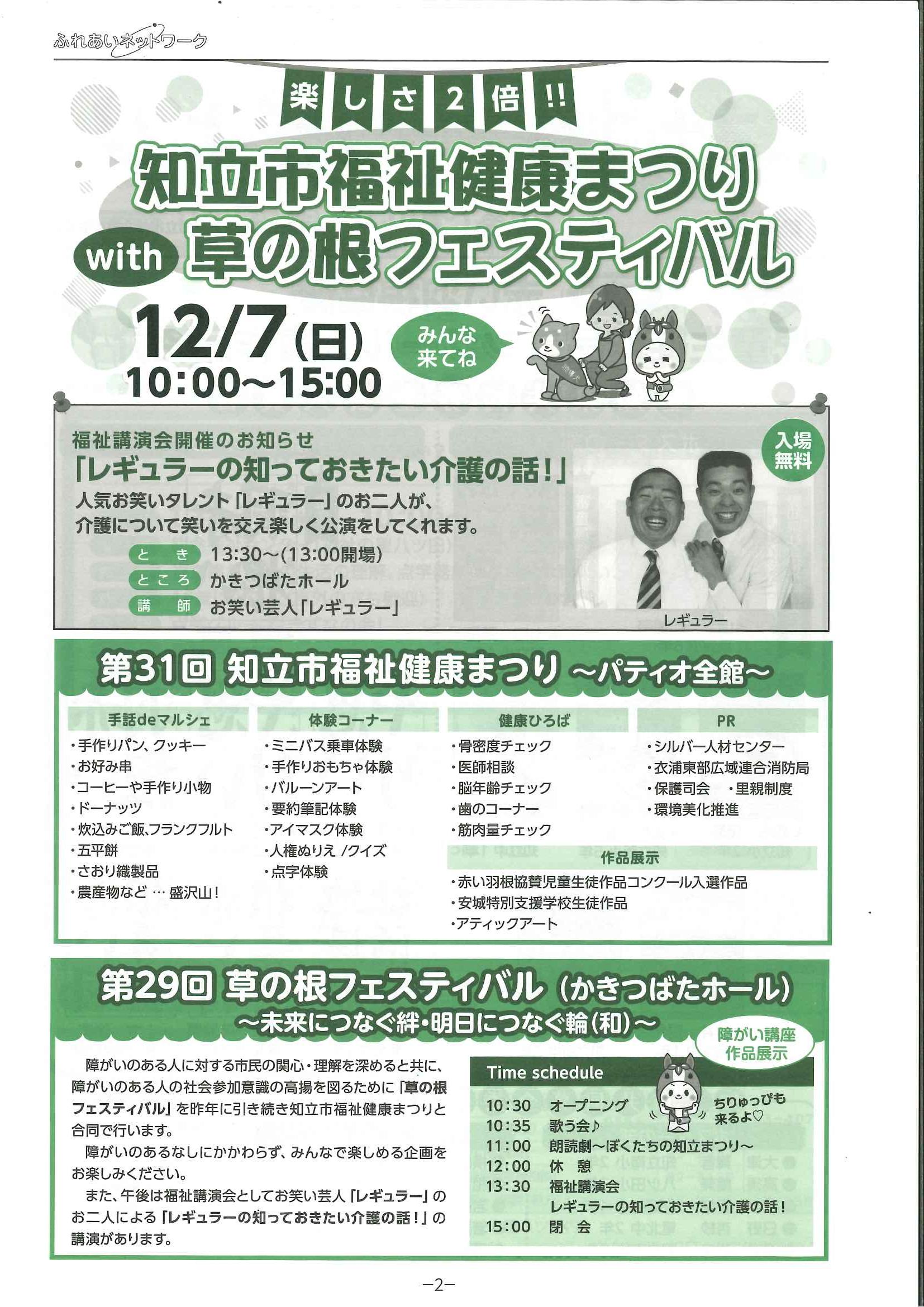 高揚を図るため「草の根フェスティバル」を知立市福祉健康フェスティバルと合同で行います。